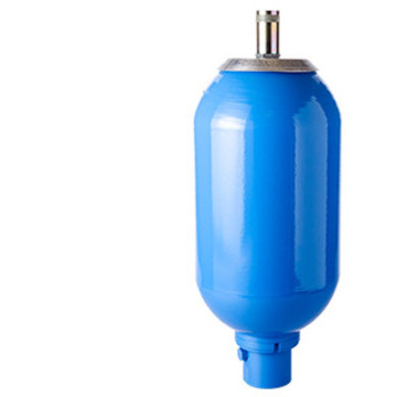Les accumulateurs bouteille type ABVE de HYDRO LEDUC sont constitués d’un corps en acier forgé, d’une vessie, d’une valve de gonflage et d’une bouche qui est utilisée comme raccordement. C’est justement cette bouche qui est munie d’une soupape qui évitera l’extrusion de la vessie, et d’une vis de gonflage utilisée au moment de la mise en pression hydraulique du circuit.