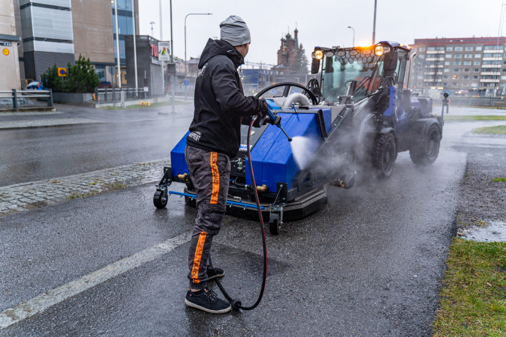 L’unité de nettoyage de surface SCU nettoie efficacement les parkings et autres grandes zones à surfaces planes. L’unité lave la surface avec de l’eau à haute pression et l’aspirateur collecte l’eau sale pour la recycler. L’appareil laisse derrière lui une surface propre et sèche sans salir l’environnement. Le produit sera présenté pour la première fois sur notre stand FN 1015/15 à la Bauma 2022.
